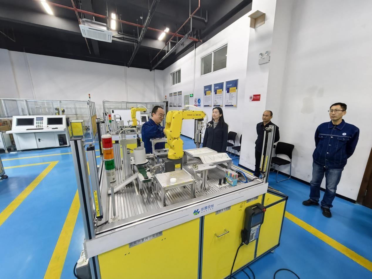 调研组先后走进交汽实训楼、产教融合大楼及C区实训场地,实地察看汽车、机器人、数控机床等各类实验室,通过现场询问、实时交流,详细了解学校实训设施配置、教学场景搭建、产教融合实践及工学一体化教学推进情况,对学校紧扣区域产业需求建设专业化实训平台、以实践教学赋能技能人才培养的举措给予充分肯定。