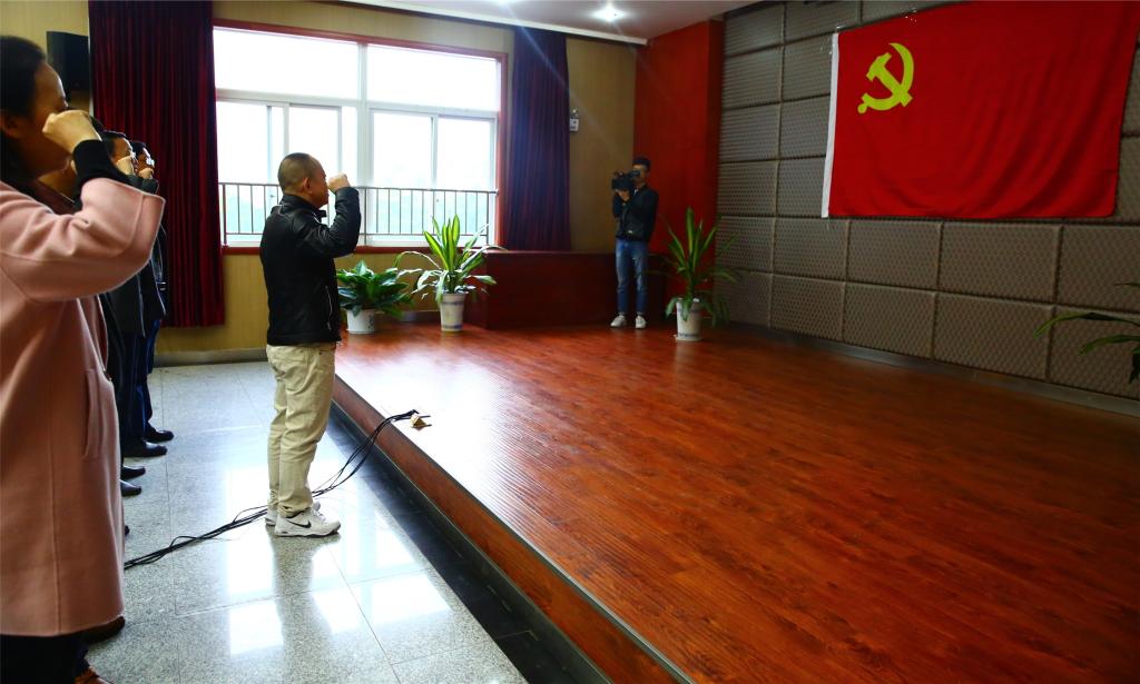 会议伊始,肖立军领誓,与会人员面对党旗,庄严宣誓,共同重温了入党誓词。