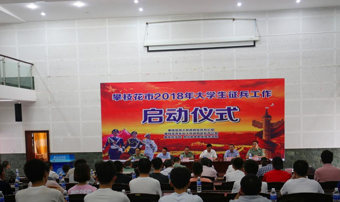 4月18日,攀枝花市2018年大学生应征入伍启动仪式在beat365学术报告厅举行,攀枝花军分区副司令员张德勇、beat365英国官网网站副校长石维富、四川机电职业技术学院副院长袁学良等领导出席启动仪式。