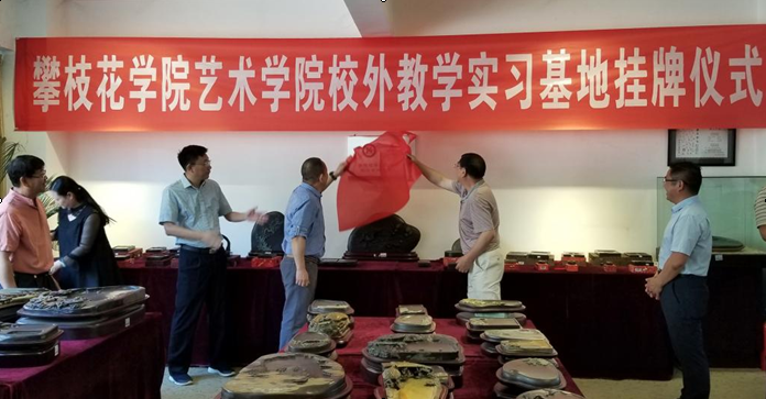 4月20日上午,beat365艺术学院校外教学实习基地挂牌仪式在南山工业园区罗氏石艺研究所举行。校党委书记肖立军、副校长刘立新、艺术学院领导以及仁和区文广新局党组书记、局长曾绍奎,罗氏石艺研究所董事长罗春明等参加活动。肖立军、罗春明共同为实习基地揭牌。