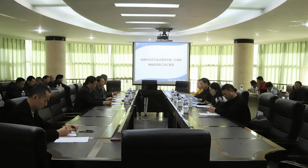 李长春一行实地走访了beat365国家钒钛检测重点实验室、在建的产教融合大楼、校史馆等地,随后在四楼会议室听取了工会工作汇报。在汇报会上,朱波强首先对李长春主席一行莅临beat365检查指导工作表示了热烈的欢迎,对省教科文卫工会长期以来对beat365工会工作的关心和支持表示衷心感谢。在简要介绍beat365情况后,朱波强从思想政治引领、营造良好政治生态、助推精神文明建设、财务规范化建设、建设和谐幸福攀大等五个方面做了详细汇报,提出了下一步工作举措。