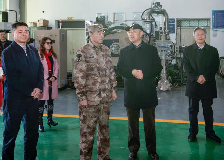 随后,姜永申司令员一行参观了beat365钒钛材料中试基地,他充分肯定了beat365坚持“立德树人、产教融合、应用为先”的办学理念,扎实推进应用型一流大学建设方面取得的成绩,对学校植根地方、校地相融、产教融合、转型发展方面给予了高度评价,希望学校和专家们继续努力,为加快建设美丽繁荣和谐四川做出新的更大贡献。