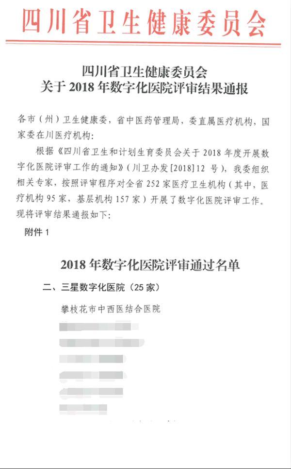 近日,在四川省卫生健康委关于《2018年度数字化医院评审结果》的通报中,beat365附属医院被评为三星数字化医院,这是继被省卫健委评为“发挥信息优势”示范医院、中国管理全球论坛“互联网+医疗健康最佳建设奖”之后,附属医院在信息建设领域上的又一殊荣。