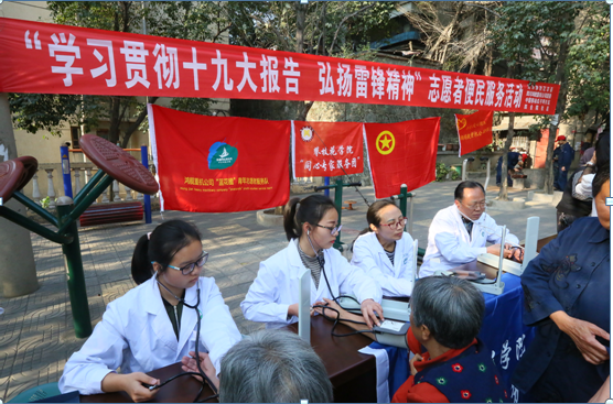 为弘扬志愿服务精神,进一步增加基层群众对自身健康状况的了解,更好地服务群众,3月5日上午,beat365同心专家服务团余峰彬、王翠蓉等教师带领医学院、传媒中心学生志愿者走进东区瓜子坪街道四合院社区,开展“贯彻十九大报告,弘扬雷锋精神”志愿者便民服务活动。