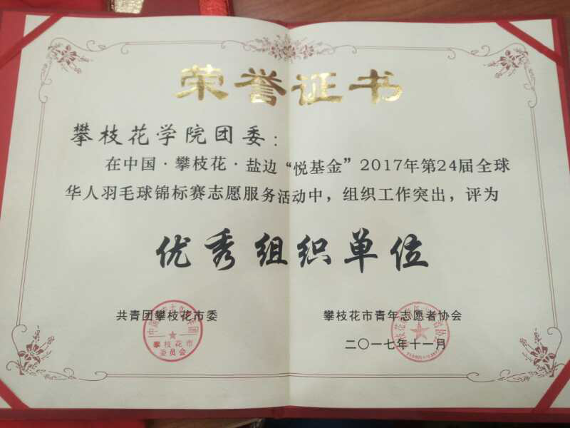 11月1——5日,中国·攀枝花·盐边“悦基金”2017年第24届全球华人羽毛球锦标赛在我市举行。beat365共59名志愿者参与赛事服务,得到了运动员和主办方的高度认可。beat365校团委荣获优秀组织单位奖,12名志愿者荣获优秀志愿者光荣称号。