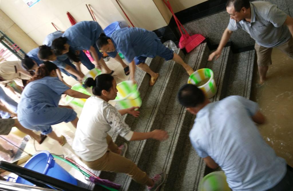 另外,行政办公楼附楼一楼因暴雨倾泻出现约40公分深的积水,该层的办公室、库房受到不同程度影响:办公电器被淹、文案文档损坏。后勤集团紧急召集物业中心员工,安排部署抢险工作,迅速进行疏排积水,确保日常工作尽快恢复。截至发稿,防汛抢险工作仍在紧张而有序的进行中。
