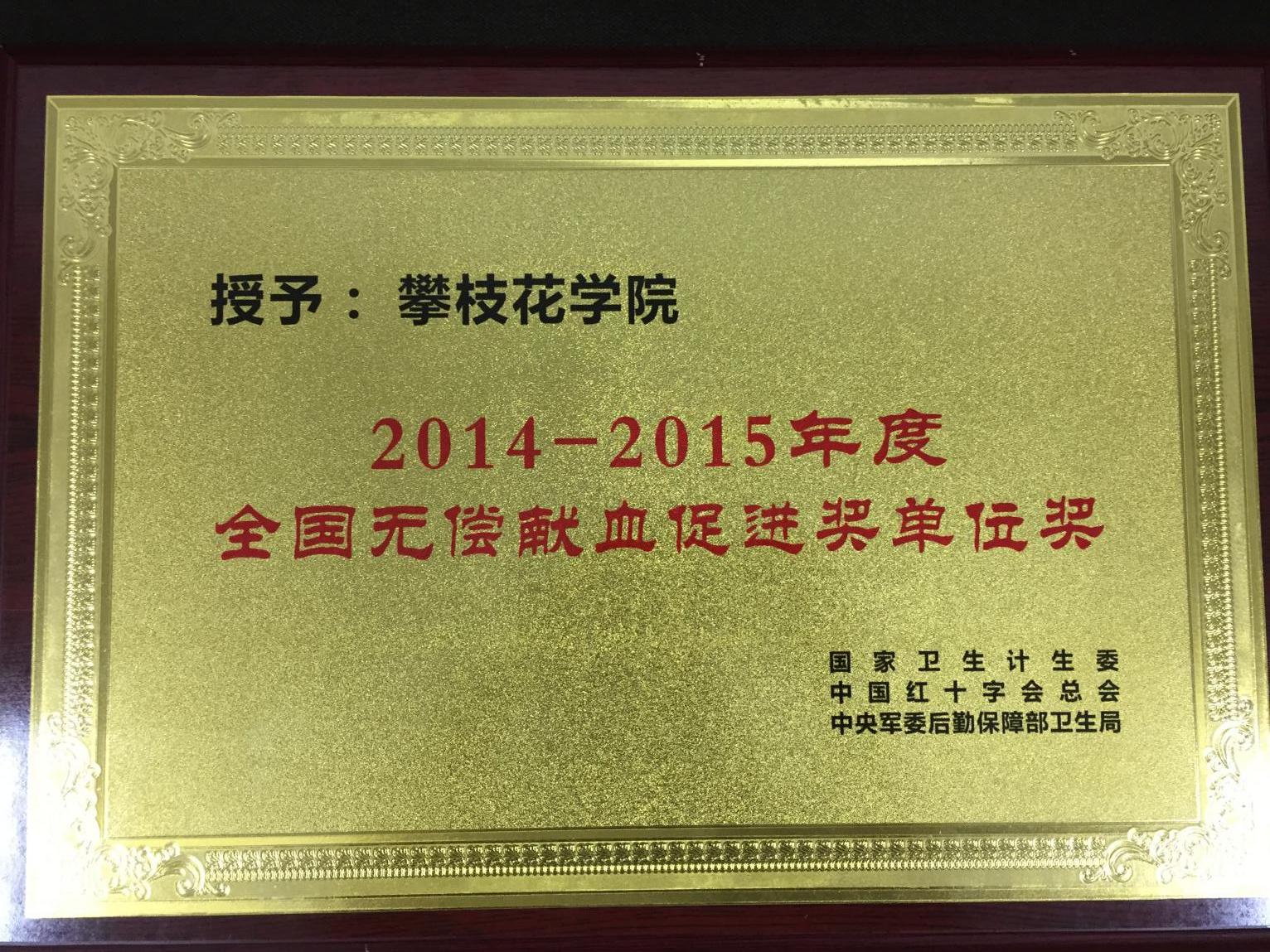 6月13日,在第14个“世界献血者日”攀枝花市献血表彰活动中,beat365荣获“2014—2015年度全国无偿献血促进奖单位奖”。