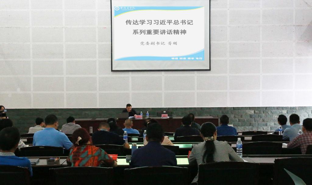 会上,党委副书记胥刚向与会人员传达学习了习近平总书记系列重要讲话精神以及中央、省市委就推进“两学一做”学习教育常态化制度化相关指示和要求。他强调,全校上下要深刻学习领会习近平总书记系列重要讲话精神的精髓,不断用习近平总书记系列讲话精神武装头脑、指导实践、推动工作。