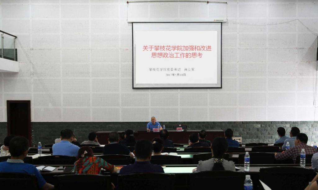 随后,党委书记肖立军传达了全国和四川省高校思想政治工作会议精神,并就加强和改进学校思想政治工作作主题讲话。讲话指出,切实加强和改进beat365思想政治工作应从五个大的方面主动思考、作为。一是要加强思想政治理论教育,增强自信。发挥好思政课的主渠道作用,同时在通识教育、心理健康教育和中国特色社会主义理论研究方面做好文章;二是要做好思想政治实践教育,强化社会实践育人。积极发挥校团委、学生会和学生社团联合会的作用,真正做到知行合一;三是要抓住思政教育的第三课堂——思想政治网络教育。发挥好易班工作中心的作用,将思想政治工作与微信、微博、客户端等新媒体技术深度融合;四是要积极探索思政工作全员全过程全方位育人模式,思政教育要覆盖学生发展全过程,促进学生全方位发展,全方位营造教育、管理、服务、实践、文化的育人氛围,让学生不仅在校受益,而且终身受益;五是要强化学校党委的主体责任和二级党组织的领导责任,抓好思政工作的顶层设计,牢牢把握党对高校的领导权,加强教师和思政工作队伍建设,努力构建大思政、大党建格局。
