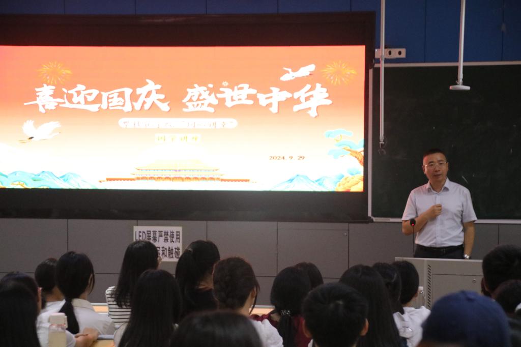 本次讲座突出“盛世中华●喜迎国庆”节日氛围,主题为《向中国智圣学习沟通智慧》。讲座由康养学院党委书记林伟主持,由中国先秦史学会分会副会长、农工党beat365英国官网网站总支主委、康养学院副院长冯奇主讲,康养学院200余名师生参加讲座。