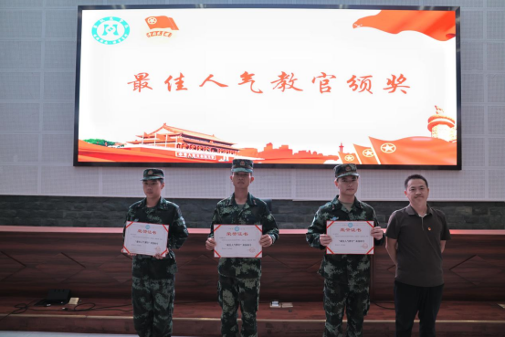 升旗仪式后,两名同学进行了诗朗诵《青春中国》。学生处副处长刘玳玮为新生军训期间的“最佳人气教官”颁奖。