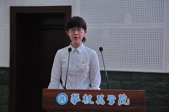 来自文学院的新团员代表张殷爱进行了表态发言。团委书记王鹃带领70名2024年新发展团员代表进行了集中入团仪式,并为他们颁发了团章和团员证。