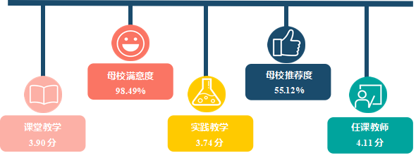 注:1.任课教师评价维度包括“很满意”、“比较满意”、“一般”、“比较不满意”、“很不满意”和“无法评价”;其中,满意度为选择“很满意”、“比较满意”和“一般”的人数占“此题总人数—无法评价人数”的比例。另外针对毕业生的反馈分别赋予1-5分(“很满意”=5分,“很不满意”=1分),计算其均值。