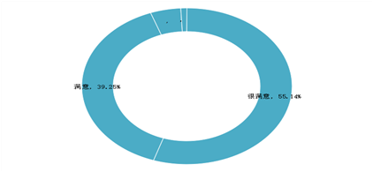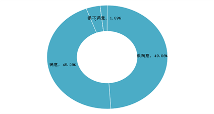 用人单位对学校就业服务工作的满意度:用人单位对学校就业服务工作的满意度为98.11%;其中49.06%的用人单位对学校就业工作表示“很满意”,45.28%的用人单位对学院就业工作表示“满意”。可见,用人单位对学校就业工作的满意度较高。