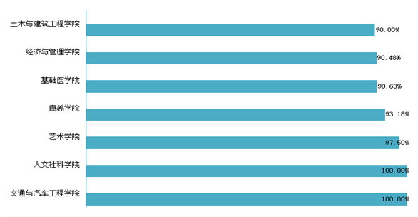 学校2020届毕业生各专业的就业情况:本科毕业生中,就业率方面,就业率较高的专业是物流管理(100.00%)、国际经济与贸易(100.00%)、秘书学(100.00%)等;而临床医学专业就业率相对较低,为71.50%。专科毕业生中,就业率位居前三的专业是学前教育(100.00%)、雕刻艺术设计(100.00%)和汽车运用与维修技术(100.00%);而康复治疗技术专业就业率相对较低,为89.29%。专业相关度方面,学校2020届本科毕业生中,临床医学、护理学、建筑学专业的相关度位居前三,占比均为100.00%;而汽车服务工程、工业设计、园艺的专业相关度相对较低,均处于45.45%及以下;本科毕业生从事与专业不相关工作的原因主要为“想找相关工作,但是就业机会太少”。专科毕业生中,眼视光技术专业的相关度较高,占比为100.00%;专科毕业生从事与专业不相关工作的原因主要为“想找相关工作,但是不符合要求”和“想找相关工作,但是就业机会太少”。
