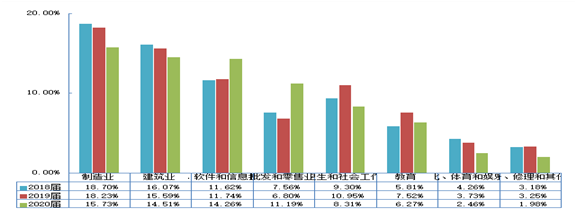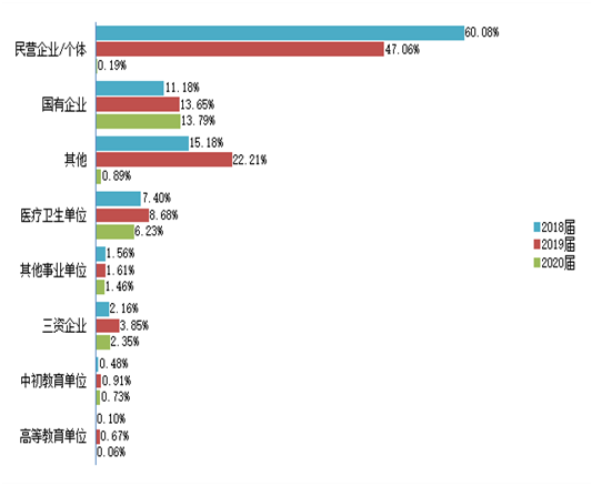表2 2018-2020届毕业生就业分布