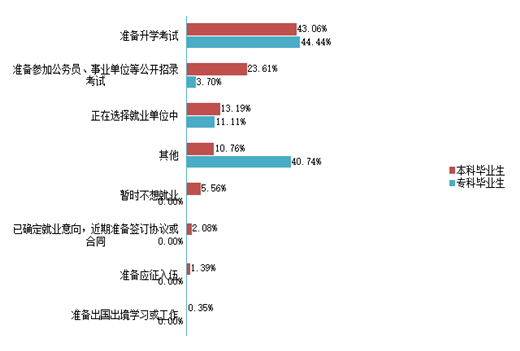 首先,学校继续完善就业服务体系,加大就业指导工作力度。引导和鼓励学校毕业生到基层工作,发挥中小微企业“就业容纳器”作用,继续引导学校毕业生积极参加到中央基层就业项目;加强校企全方位、深层次的合作,在校内开设实训课和实训模拟,在校外开辟职业模拟教学场地和实习基地,开设实训课等,继续努力为学生创造更多更丰富的实习机会,提高学生的社会适应性;学校应积极向重点领域输送毕业生,围绕“十三五”规划、“一带一路”、“长江经济带”、“京津冀协同发展”等重大发展战略,向国家重点行业、重点地区、重大工程、重大项目输送毕业生,引导毕业生先到先进制造业、现代服务业和现代农业等领域就业。