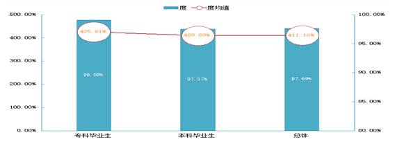 对专业素质的评价:对于目前工作需求而言,2020届本科毕业生认为专业知识和专业能力的重要度均在93.00%以上,对工作/学习的满足程度均在84.00%以上。2020届专科毕业生认为专业知识和专业能力的重要度均在98.00%以上,对工作/学习的满足程度均在91.00%以上。